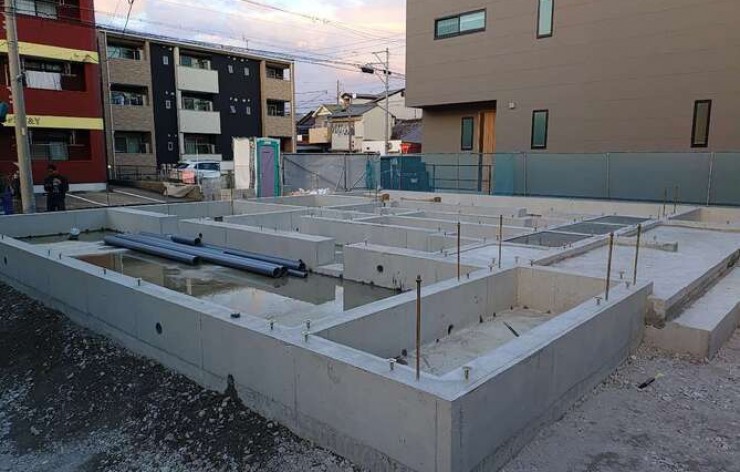 アパートの基礎は、戸建ての基礎と比べて規模が大きく、多くの職人が必要です。また、お施主様の家賃収入も関係していることから工程遵守がより重要となってくるケースが多いです。