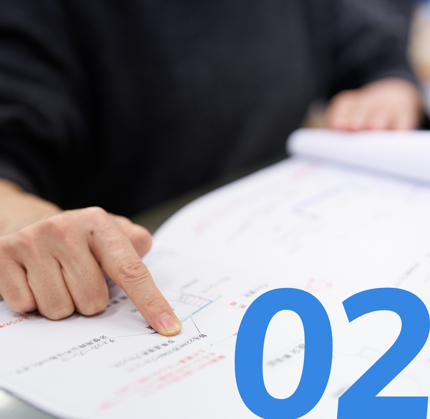 工程・必要職人数・難易度・現場住所などの情報から、水建オリジナルの職人稼働管理システムを使い、職人の配置の最適解を導き出しています。